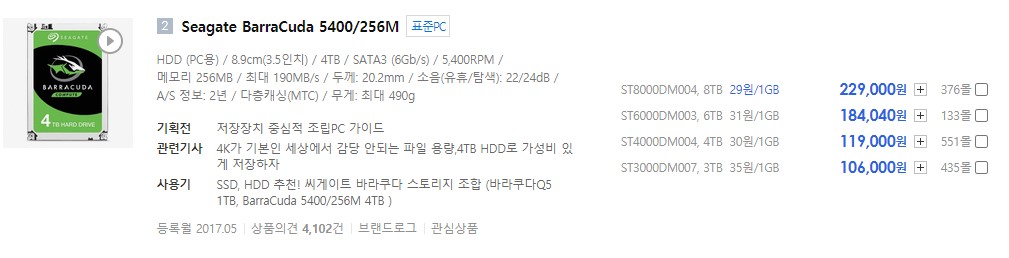 따라서 가장 경제적인 방법은 용도에 맞게 용량을 배분하는 방법입니다. 최근에는 SSD와 HDD의 비율을 1:4로 맞춘 견적이 많이 보입니다. SSD를 500GB~1TB, HDD를 2TB~4TB 정도로 구입한다면 일반적인 용도(게임이나 영상 시청, 상업적이지 않은 영상 편집)로 PC를 사용하는데에 별다른 문제가 없습니다.